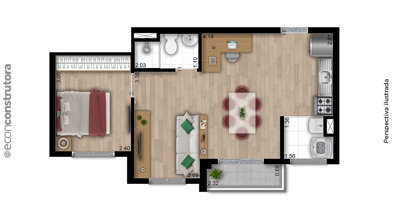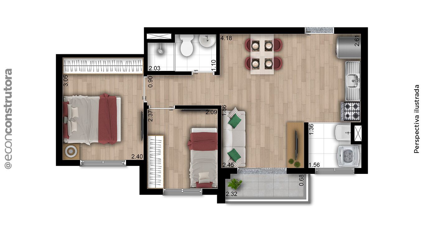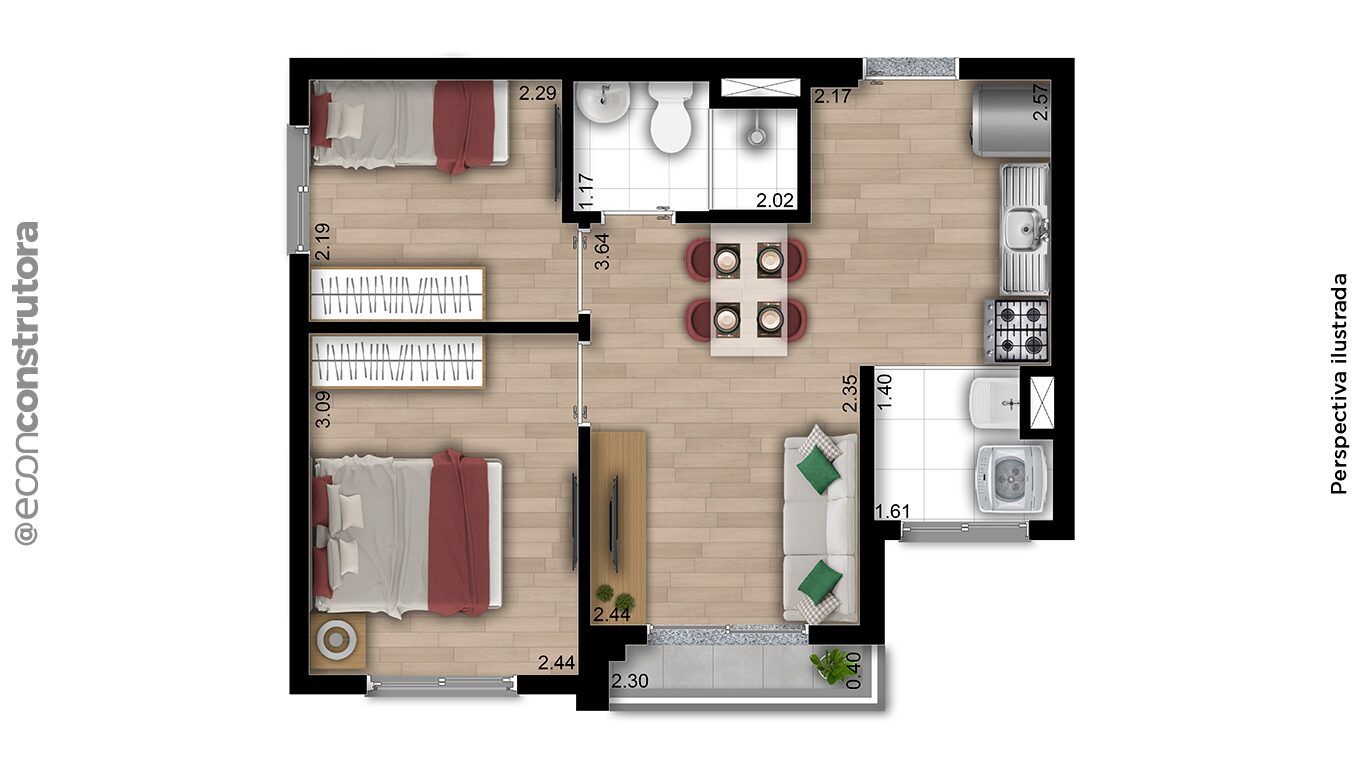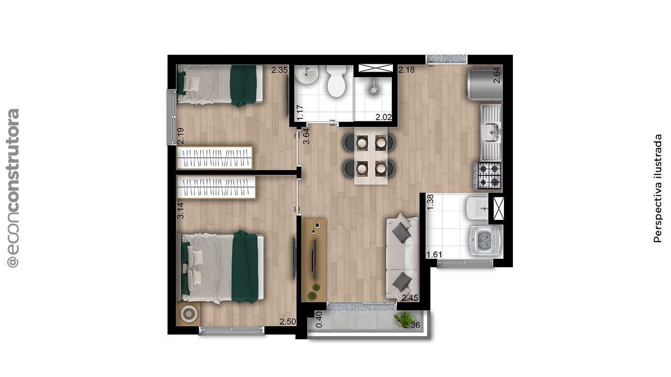 Tipologias2 dormitórios com terraço – 38m² a 40m²