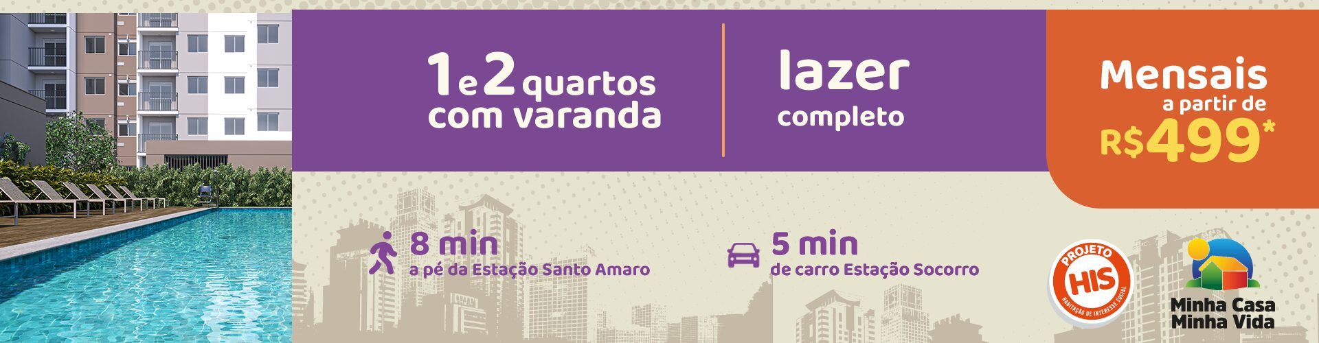 | Dormitórios | 1 e 2 quartos com varanda |